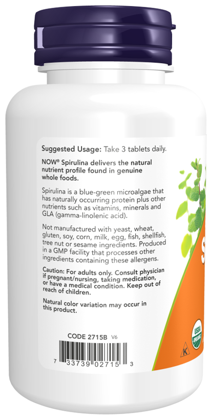 1000 мг спирулины двойной крепости - это сине-зеленые микроводоросли, которые содержат природный белок, а также другие питательные вещества, такие как витамины, минералы и GLA (гамма-линоленовая кислота). NOW Spirulina обеспечивает естественный профиль питательных веществ, содержащихся в настоящих цельных продуктах.
