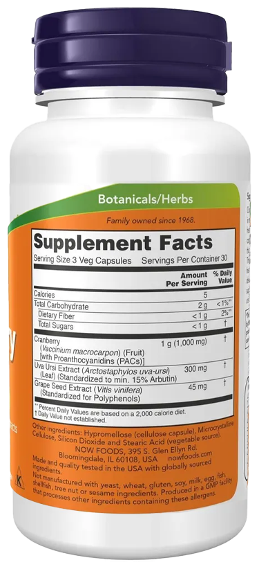Каждая порция содержит 1000 мг клюквы. Для дополнительного эффекта мы добавили 300 мг экстракта толокнянки и 45 мг экстракта виноградных косточек.