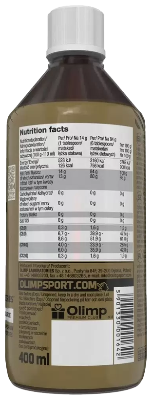 Продукт Olimp MCT Oil предназначен для покрытия расходов в энергии при интенсивной мышечной работе.