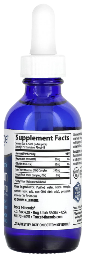 lonic Bor обеспечивает бор в ионной форме - форме, наиболее широко распознаваемой организмом, - а также полный спектр ионных микроэлементов для поддержания минерального баланса организма.