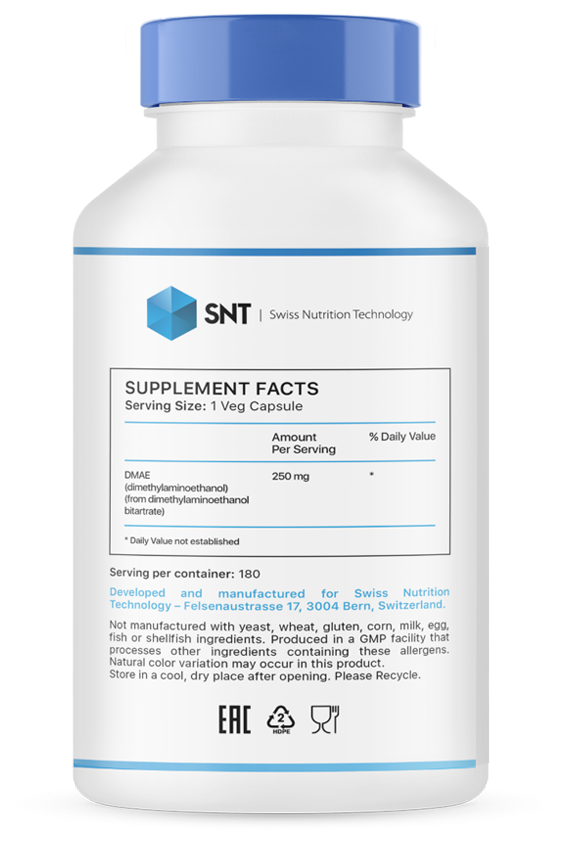 DMAE - природный ноотроп, который оказывает активное влияние на когнитивные функции организма. Прием этой добавки улучшает память, концентрацию внимания , а так же заметно улучшает мозговую активность. DMAE при правильной дозировке способен улучшать настроение, уменьшать тревожные проявления и бороться со стрессом.