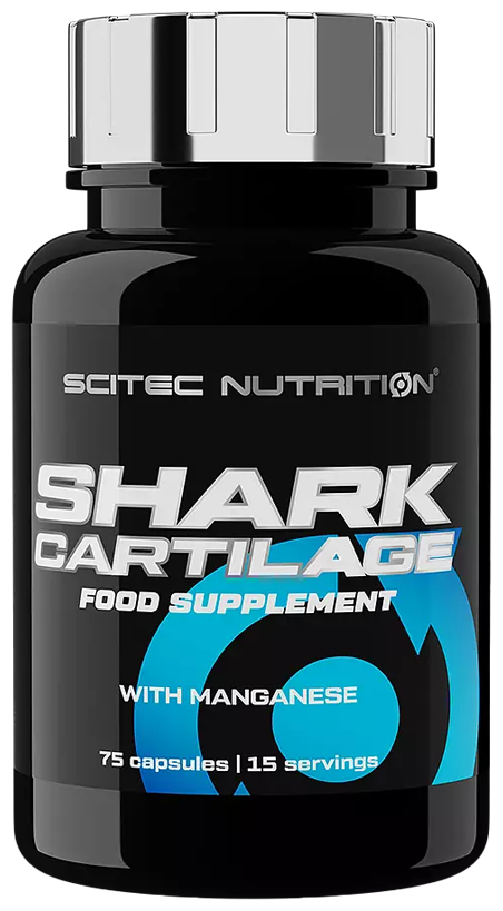 порошок из хрящей акулы (рыбных) 83%, оболочка капсулы [желатин, глазирующий агент (шеллак), краситель (оксиды и гидроксиды железа), регуляторы кислотности (гидроксид аммония, гидроксид калия)], сульфат марганца. |