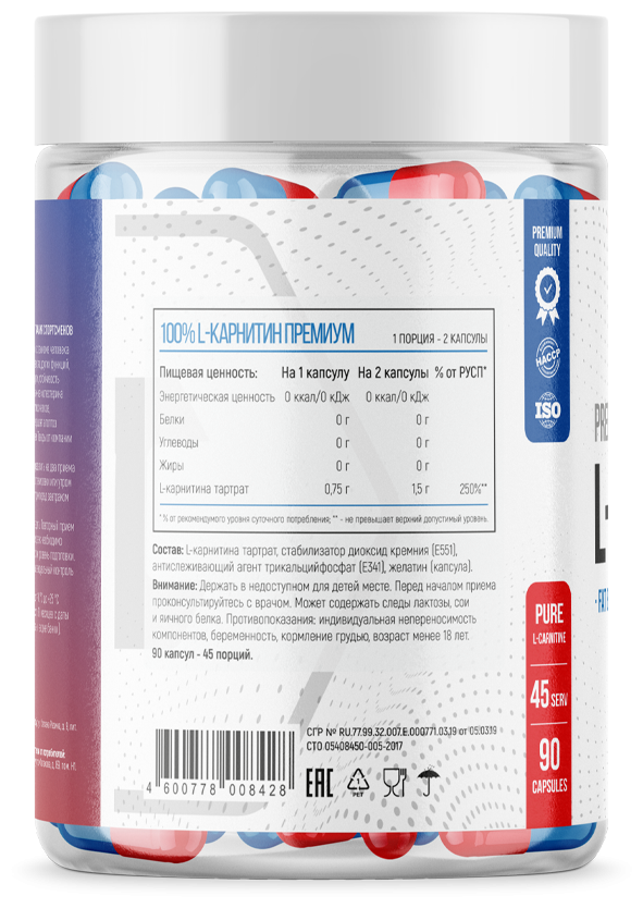 L-карнитин тартрат, желатин антислеживатель.