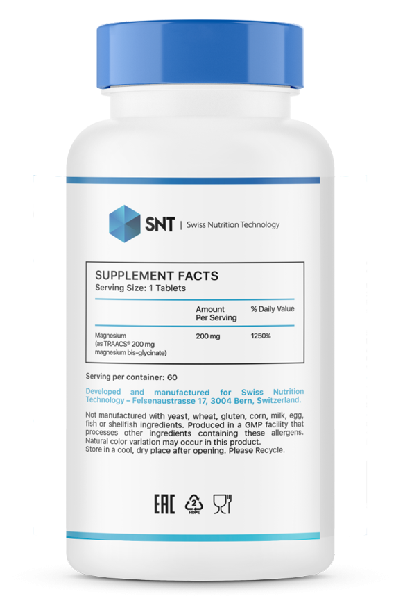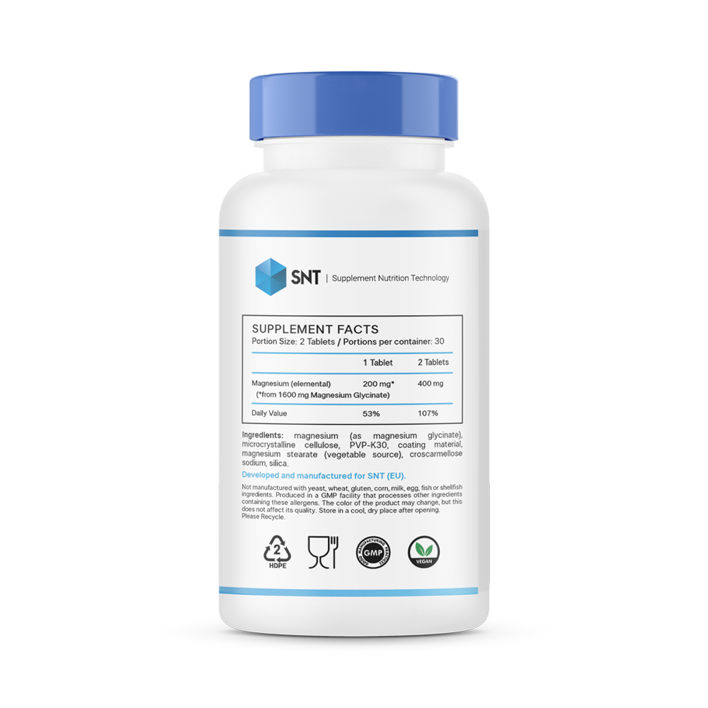 Magnesium Glycinate - это препарат магния, который обладает высокой биодоступностью и хорошо переносится организмом. Дополнительный прием поможет вам нормализовать сердечный ритм, снизить АД, купировать судороги в мышцах, повысить жизненный тонус и настроение, умственную и физическую активность, уменьшить боли в суставах.