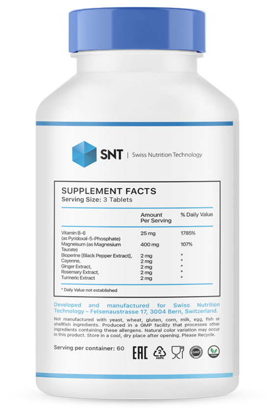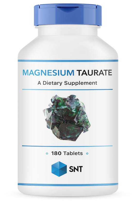 Таурат магния - хелатная форма магния и аминокислоты таурина. Вместе они являются отличными помощниками в снижении кровяного давления и оказывают пользу для сердца.Magnesium Taurate разработан с соблюдением всех стандартов качества. Добавка состоит не только из этих двух полезных компонентов,но и включает в себя другие важные витамины и микроэлементы, такие, как: витамин В-6, экстракт черного перца, паприка, корень имбиря, экстракт розмарина и куркумин, которые в комплексе положительно влияют на весь организм. Магний таурат обеспечивает защитные функции мозгу, сердцу, глазам и даже мышцам. Этот комплекс помогает предотвратить аритмию и образование тромбов.