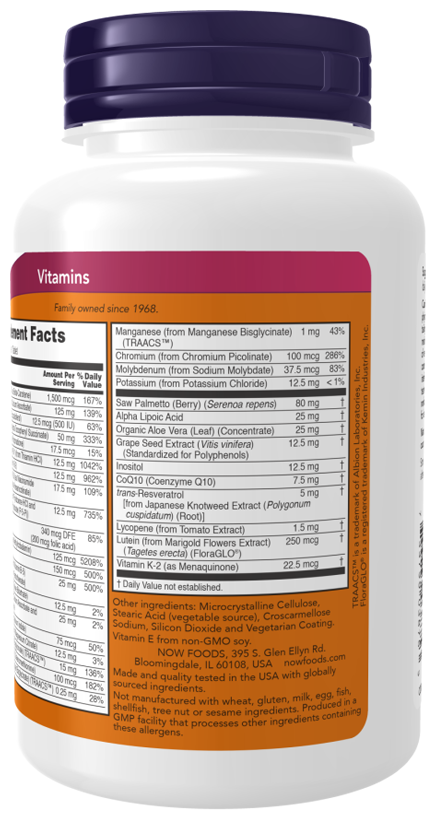 Adam Mens Multivitamin-это многокомпонентный комплекс, каждый ингредиент которого подобран таким образом, чтобы максимально укрепить и улучшить работу мужского организма. В его состав вошли все необходимые витамины и минералы, а также растительные экстракты, Коэнзим, ALA и другие важные компоненты. Все это вас ожидает в форме удобных и биодоступных таблеток. Кроме того, комплекс максимально безопасен, что подтверждает международный сертификат GMP, и может быть использован независимо от образа жизни и общего состояния здоровья.