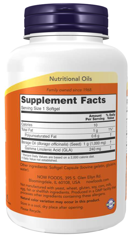 Масло бурачника - это питательное масло, содержащее 60% полиненасыщенных жиров и примерно в два раза больше гамма-линоленовой кислоты (ГЛК), чем масло примулы вечерней. ГЛК - это незаменимая жирная кислота, которую организм способен вырабатывать из поступающей с пищей линолевой кислоты. Но ГЛК используется организмом более эффективно, если поставляется напрямую из пищевых источников. Исследования показали, что масло бурачника не содержит вредных уровней пирролизидиновых алкалоидов (ПА). Масло бурачника от NOW получено путем механического отжима и не содержит гексана.