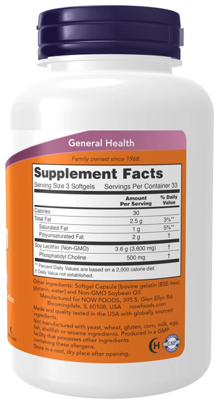 Мягкие таблетки с лецитином содержат фосфатидилхолин, который входит в состав значительной части клеток мозга и нервной системы. Лецитин также содержит незаменимые жирные кислоты природного происхождения и инозитол. Лецитин способствует эмульгированию жиров, позволяя им смешиваться с водой.