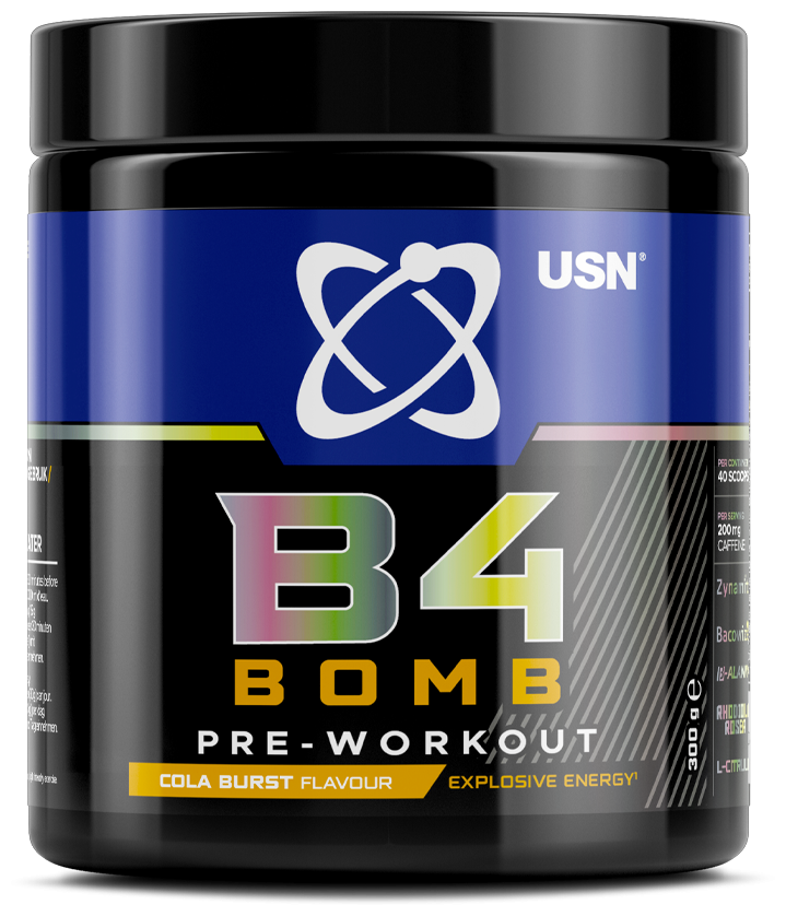 USN B4-Bomb - это бодрящее предтренировочное средство, разработанное для того, чтобы помочь вам получить максимальную отдачу от каждой тренировки и достичь поставленных целей. Разработано с научной точки зрения для повышения вашей энергии и концентрации во время тренировки.