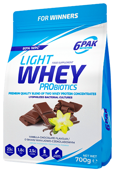 6PAK Nutrition Light Whey Probiotics - WPC - это безлактозное сырьё - что, безусловно, понравится людям, которые имеют проблемы с пищеварением. У большинства людей организм утрачивает с возрастом возможность синтеза лактазы, которая отвечает за правильное переваривание лактозы.