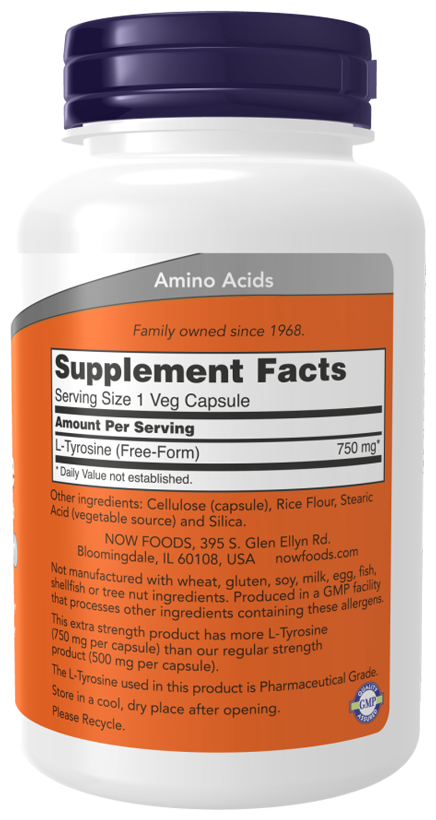 L-Тирозин - это условно незаменимая аминокислота, необходимая для производства нейромедиаторов дофамина, адреналина и норадреналина, а также пигмента кожи меланина. Норадренали (норэпинефрин) и адреналин (эпинефрин) - основные механизмы реагирования на стресс, которые наряду с дофамином отвечают за хорошее настроение и умственную активность. Кроме того, L-Тирозин имеет критическое значение для нормальной работы щитовидной железы.