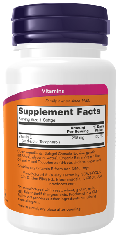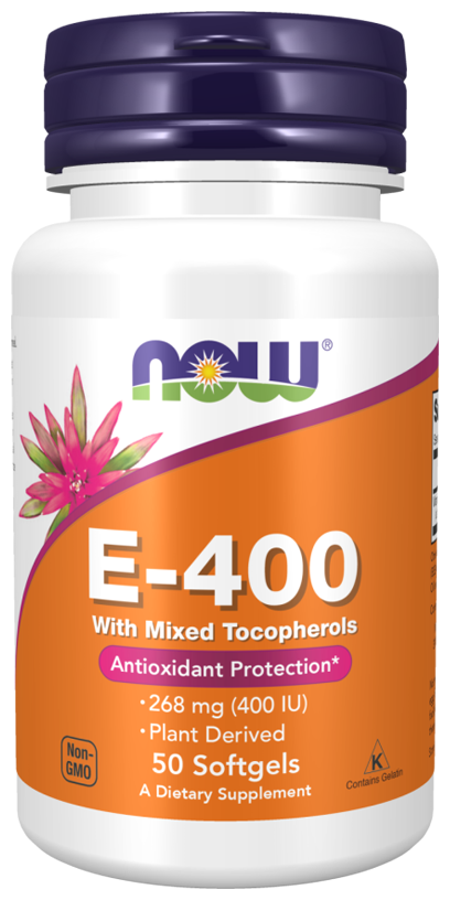 NOW Vitamin E-400 With Mixed Tocopherols, 50 капсул