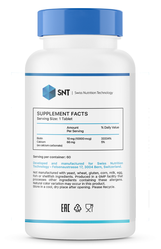Биотин принимает непосредственное участие в метаболизме жиров, углеводов и белков, перерабатывая их в энергию, что является важным фактором для спортсменов и людей, ведущих активный здоровый образ жизни.