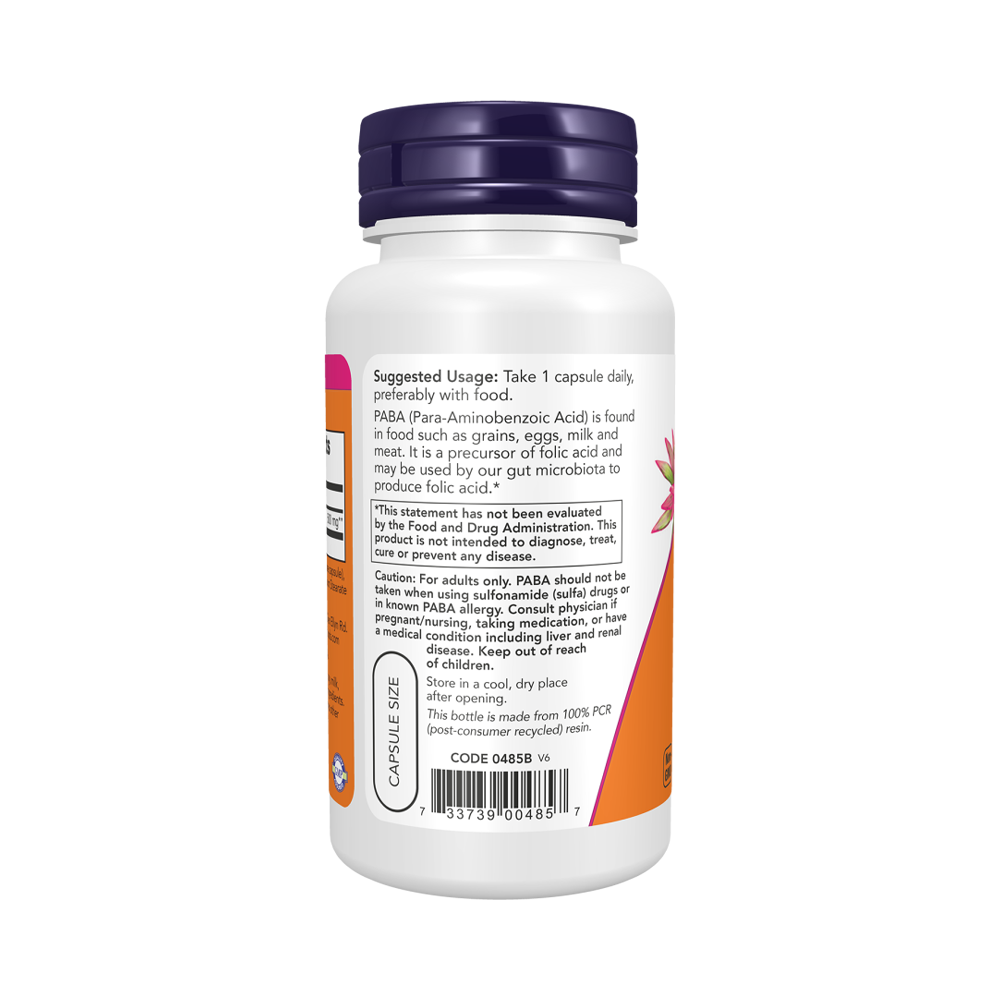 ПАБК (пара-аминобензойная кислота) содержится в таких продуктах питания, как зерновые, яйца, молоко и мясо. Она является прекурсором фолиевой кислоты. Микрофлора нашего кишечника может синтезировать из нее фолиевую кислоту. ПАБК также может помочь клеткам бороться с окислительным стрессом.